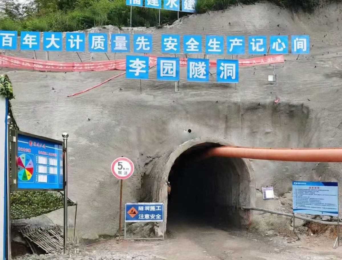 圖為李園隧洞出洞口處安全講評(píng)臺(tái)。黃浩文宇攝。